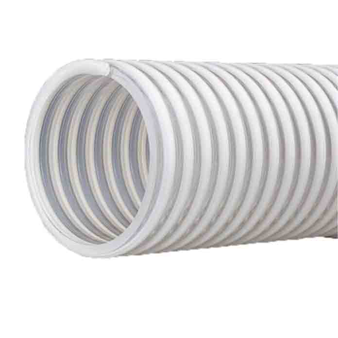 Texoflex PP Ø60 mm je fleksibilna industrijska cev izrađena od kombinacije mekog i tvrdog PVC-a, sa glatkom unutrašnjom površinom i spiralnim ojačanjem od bele PVC žice. Zahvaljujući svojoj strukturi, odlična je za široku primenu u industriji.