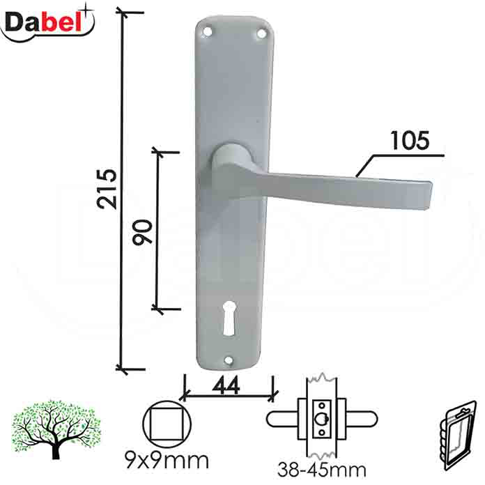 🛠️ Materijal: aluminijum 🎨 Boja: F1 – silver (srebrna) 📏 Rozeta Ø50 mm, dužina ručice 100 mm 🔑 Ključ: standardna rozeta za bravu 🚪 Pogodna za drvena vrata (38–45 mm) 📦 Pakovanje: trgovačko kačenje