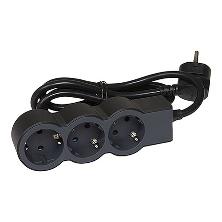 Produžni kabl sa 3 utičnice 3×2P+E 1.5 m crni Legrand 694550