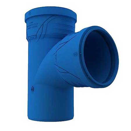 Niskošumna S LINE kanalizaciona T račva Ø 110/50 -Gustina 9 gr/cm3, prema ISO 1183 -Čvrstoća na zatezanje 28 MPa, prema ISO 527 -Modul istezanja 1300 Mpa, prema ISO 527 -Udarna čvrstoća prema Šarpiju 70 kJ/m², Prema ISO 179