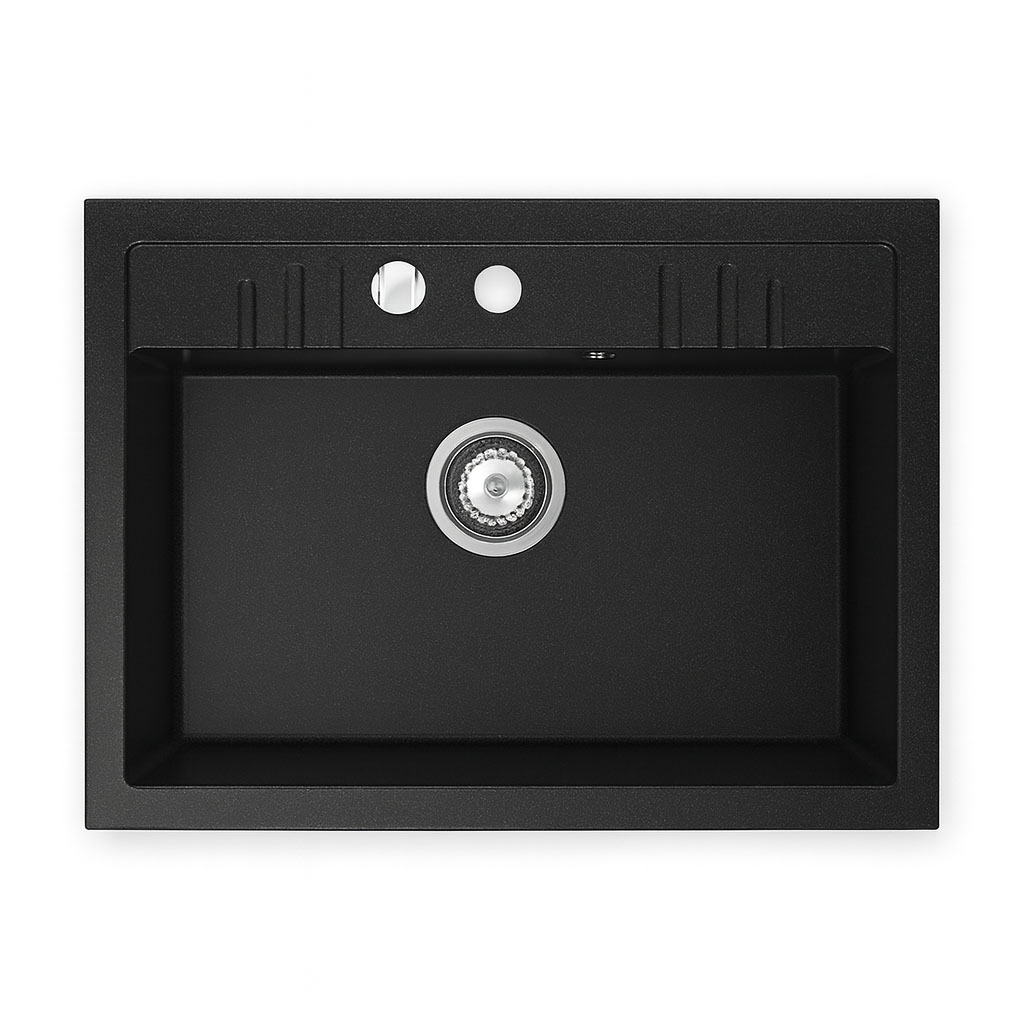 Granitna sudopera DRGM1/48/58BA u crnoj boji dimenzija 58 x 48 cm predstavlja elegantno i funkcionalno rešenje za svaku kuhinju. Izrađena je od granitnog kompozita visokog kvaliteta, otporna je na ogrebotine, visoke temperature i hemijska sredstva, što garantuje dugotrajnu upotrebu i lako održavanje.