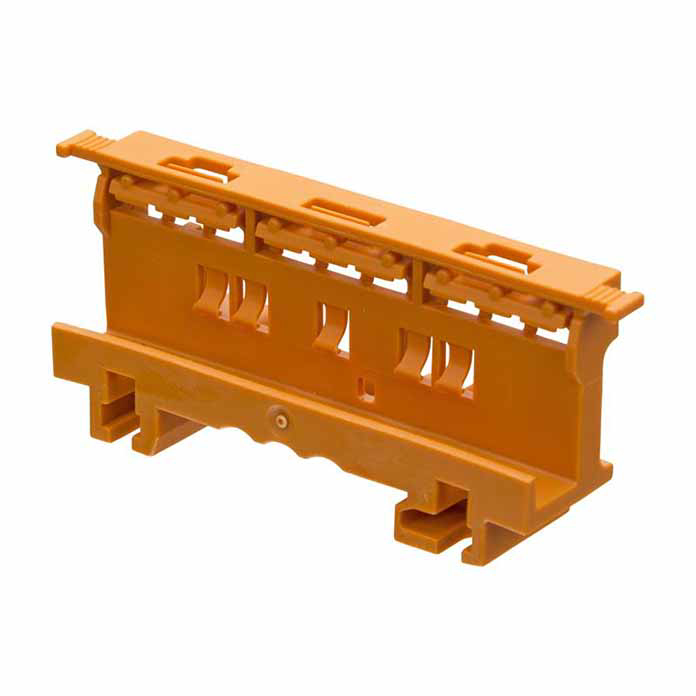 Montaža nosača je predviđena na DIN-35 šinu, a može i šrafno pričvršćivanje (screw mount), zavisno od načina ugradnje. Kućište je od poliamida (PA66), narandžaste boje, sa UL94 V0 klasom nezapaljivosti.